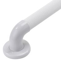 Deze duurzame kunststof handgreep is voorzien van een geribbelde buis, deze ribbels zorgen voor extra grip tijdens het vastpakken. De wandbeugel heeft een buisdiameter van 35 mm en is gemaakt voor intensief gebruik aan de muur. De wandbeugel word op 6 punten aan de wand/muur bevestigd, er zitten afdekplaatjes op de wandbeugel die over de schroeven geschoven worden.